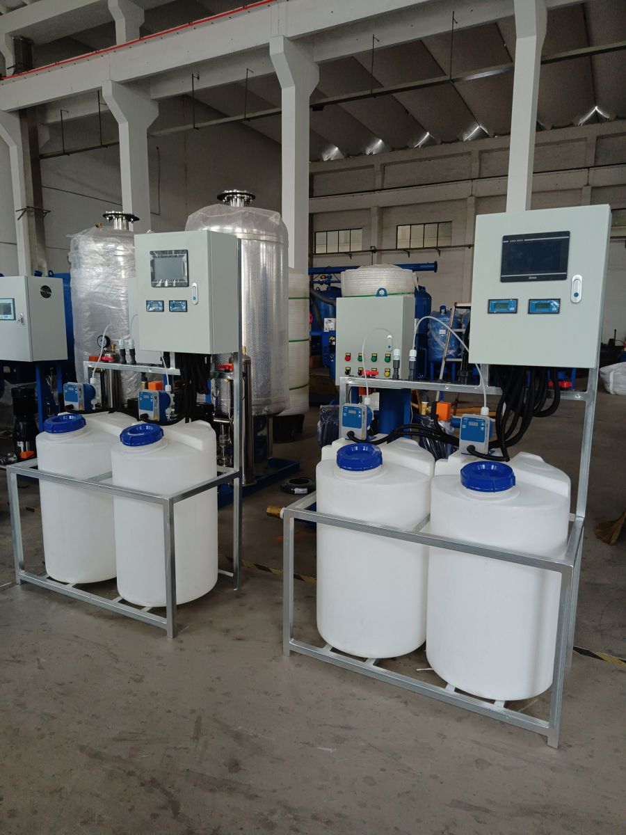 全自動(dòng)加藥裝置采用時(shí)間程序控制,此控制方式無(wú)需儀表的支持,首先根據(jù)系統(tǒng)的運(yùn)轉(zhuǎn)需要設(shè)定自動(dòng)加藥的周期、加藥量、加藥時(shí)間和加藥頻率。在以后的系統(tǒng)運(yùn)轉(zhuǎn)過(guò)程中,到加藥周期,計(jì)量泵自動(dòng)打開(kāi)加藥,加到規(guī)定的時(shí)間計(jì)量泵關(guān)閉;到排污周期,計(jì)量泵停止加藥,排到規(guī)定的時(shí)間后,計(jì)量泵繼續(xù)開(kāi)啟,補(bǔ)充排污損失掉的藥劑,把系統(tǒng)的含藥量維持在正常的水平、加到規(guī)定的時(shí)間計(jì)量泵關(guān)閉。