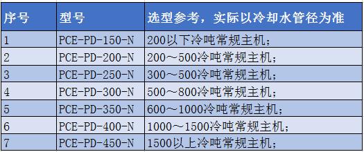 序號 型號 選型參考,實際以冷卻水管徑為準