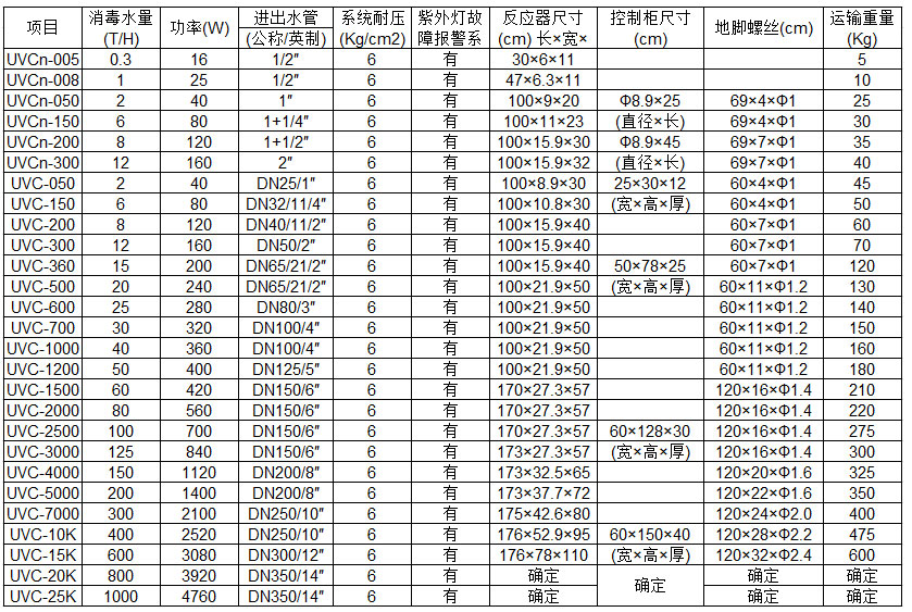 4、UVCn型號(hào)為螺紋接口,UVC型號(hào)為法蘭盤(pán)接口。